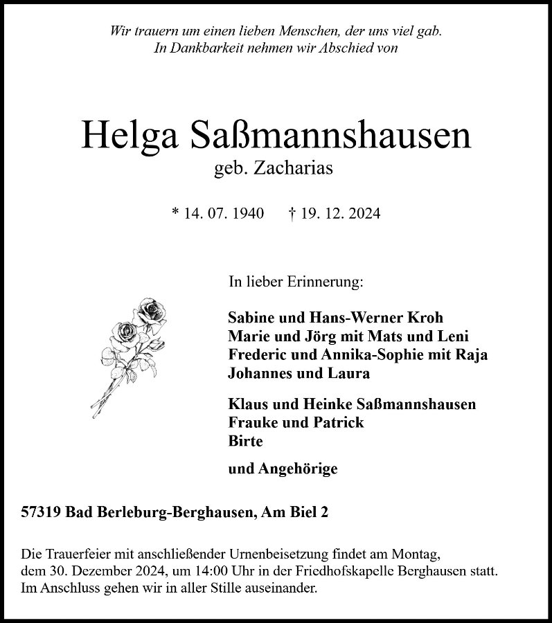 Helga Saßmannshausen geb. Zacharias